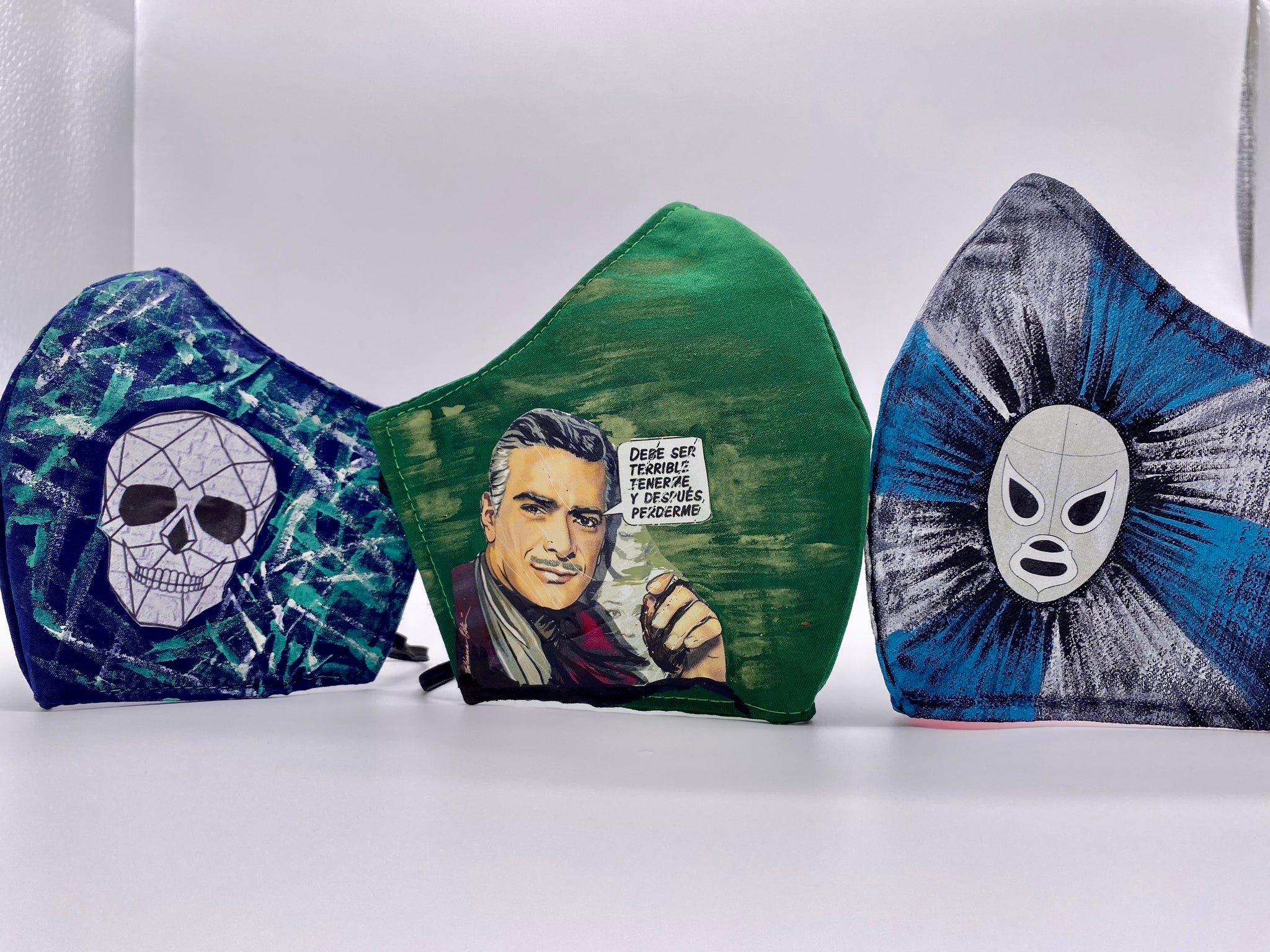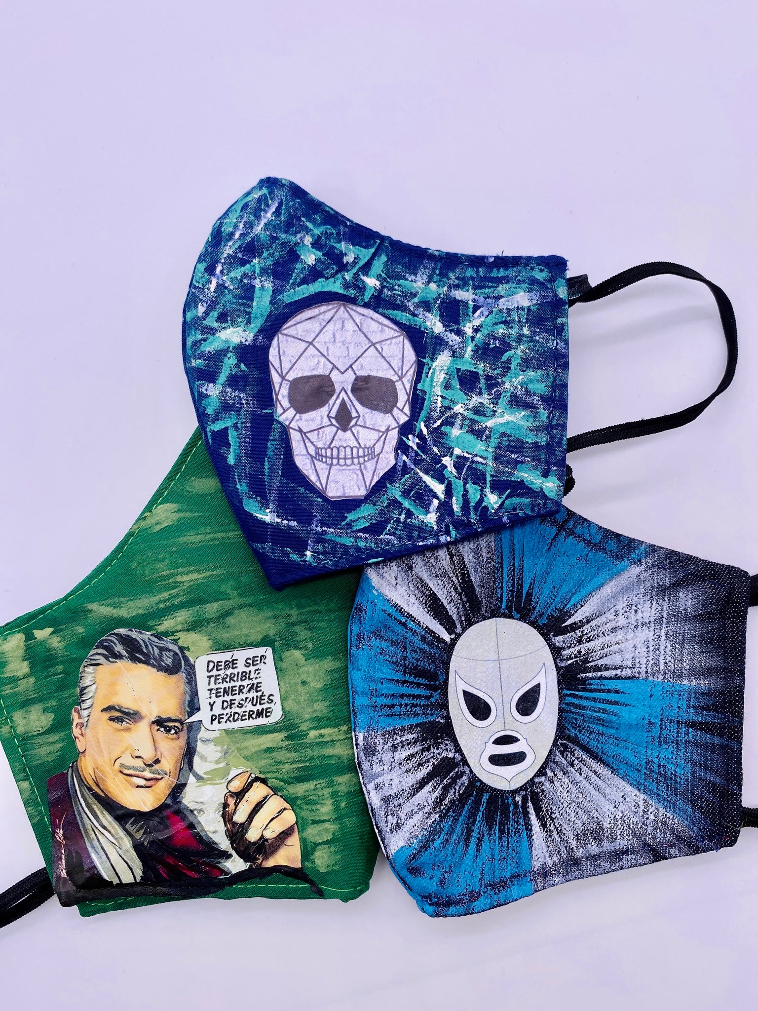 Reusable and breathable face mask, partially hand painted. They are double layered, super confortable and durable. Hand washing before use is recommended.